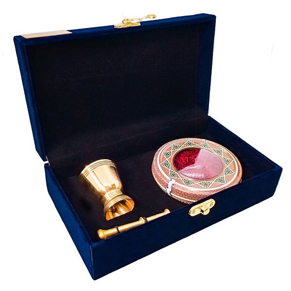 A gold-toned cup, adding a touch of sophistication to the saffron experience.